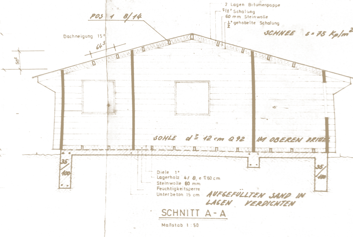 Ursprünglich standen 4 Haustyen zur Auswahl. In den letzten 50 Jahren hat sich jedes Haus verändert, wurde umgebaut und individuell gestaltet. Das gesamte Gebiet umfasst 120 Häuser und war damals dopplet so groß geplant.